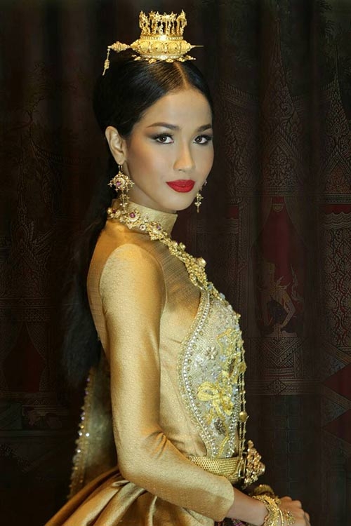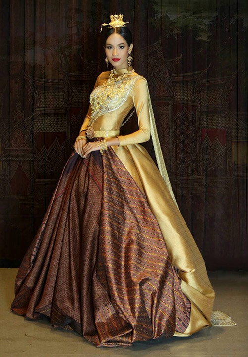 ชุดประจำชาติ เมญ่า-นนธวรรณ ทองเหล็ง "มิสไทยแลนด์เวิลด์ 2014" สำหรับร่วมประกวด "มิสเวิลด์ 2014" ที่ประเทศอังกฤษ ปรับปรุงตัดเย็บใหม่โดย คุณกานต์ กาฬภักดี และคุณอภิสิทธิ์ โกสีนันท์ จากห้องเสื้อ Oat Couture ผ้าสไบออกแบบและตัดเย็บโดย คุณเอกภูมิ งามฉมัง จากห้องเสื้อ Surface เครื่องประดับโดยคุณสุรภา ยอดคำปัน จากร้านกรุช่าง ทองโบราณ